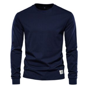 Pull fin en coton à manches longues et col rond pour homme